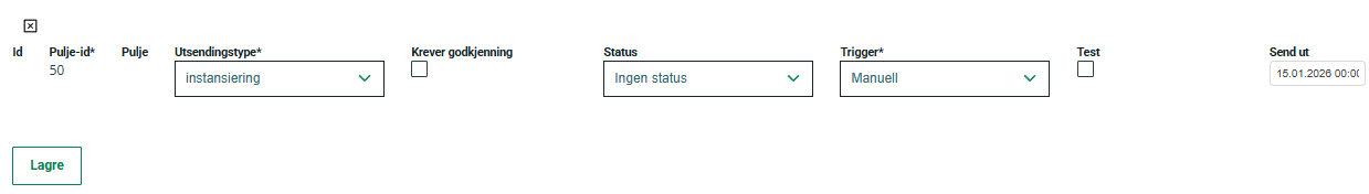 | Send ut | Angir tidspunkt for utsendelse. |